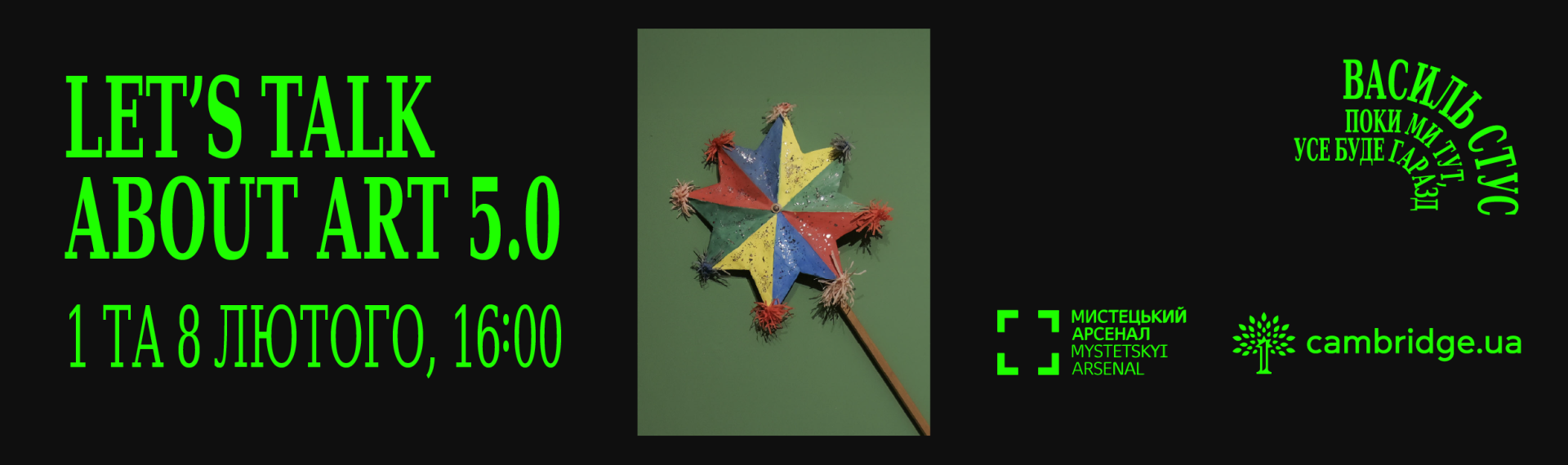 1 та 8 лютого о 16:00 запрошуємо до Мистецького арсеналу на фінальні освітні англомовні зустрічі Let’s Talk About Art 5.0 у межах п’ятої серії спільної ініціативи зі школою Cambridge.ua.