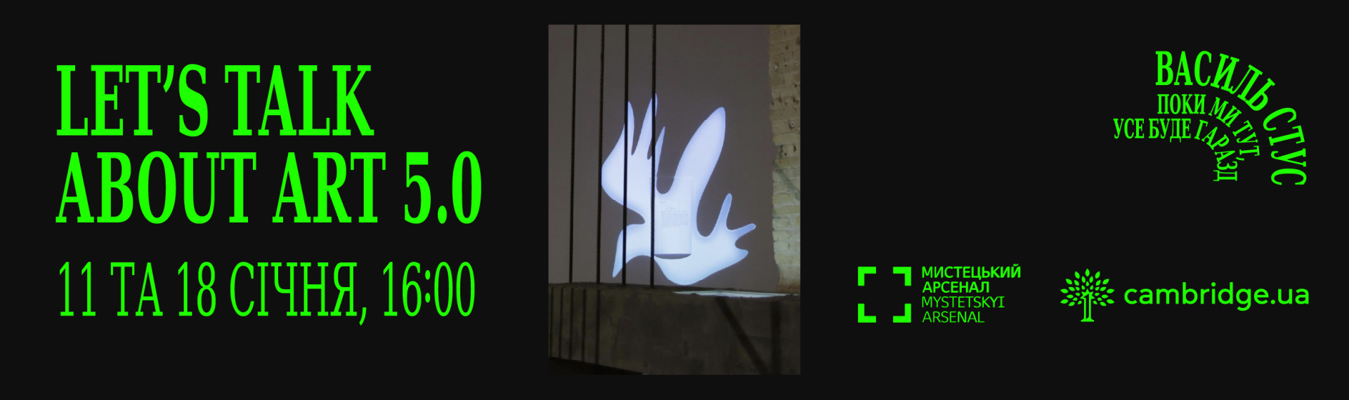 11 та 18 січня о 16:00 запрошуємо до Мистецького арсеналу на освітні англомовні зустрічі у межах п’ятої серії спільної ініціативи зі школою Cambridge.ua — Let’s Talk About Art 5.0.