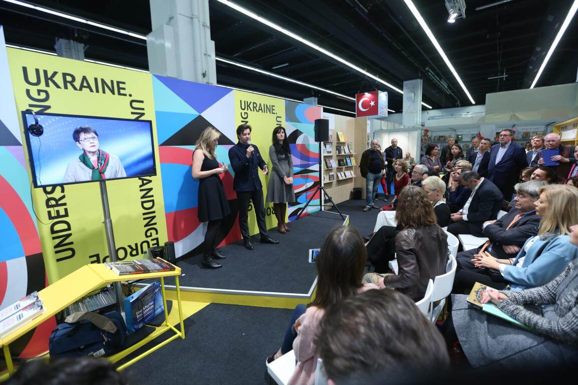 Вчора, 11 жовтня, у Німеччині, на одній із найбільших книжкових подій світу – Франкфуртському книжковому ярмарку – офіційно відкрили Національний стенд України. 17 видавництв розмістили свої книжки на площі 100 квадратних метрів. Також на стенді представлені книжки, відзначені преміями протягом останніх кількох років, як за дизайн, так і за контент, зокрема премія ВВС, «Найкраща книга Форуму видавців», всеукраїнський рейтинг «Книга року». Організаторами Національного стенду є Міністерство культури України та «Мистецький Арсенал» у співпраці з Міністерством закордонних справ, та Асоціація видавців і книгорозповсюджувачів. Державна підтримка представництва України на книжковій сцені Франкфурта складається з 2,5 млн грн. від Міністерства культури та 12,6 тис. дол. від МЗС. Відкриваючи подію, Віце-прем’єр-міністр України Павло Розенко наголосив, що найголовніший посил сьогодні полягає в тому, що Україні є чим пишатися і є що продемонструвати світу. «Я сподіваюсь, що наступний 2018 рік стане роком прориву напрямку формування національної державної політики в напрямку книговидання, адже попри колосальний потенціал нашого книговидання, наших митців, поетів, письменників, рівень сьогоднішнього наповнення ринку і видання нових творів на мій погляд, все-таки залишається незадовільним. Але я абсолютно впевнений: ми знаємо куди нам треба рухатись вперед і наступний рік буде ще кращим, наступний стенд буде ще потужнішим і прогрес, який ми показуємо на Франкфуртському ярмарку протягом трьох останніх років, стане стабільністю, яка перетвориться в майстерність». Концепція Національного стенду цьогоріч – «Understanding Ukraine, Understanding Europe». Це гасло можна побачити на всіх роздаткових матеріалах та у дизайні стенду. «Тему цьогорічного Національного стенду України обрано надзвичайно актуальну, адже і справді ми сьогодні знаходимось в новому європейському вимірі, знайомимо світ з новою, сучасною Україною, – зазначив Міністр культури України Євген Нищук. «Впевнений, що спільними зусиллями держави та мистецької спільноти ми зробили наш Національний стенд ще потужнішим, модерновим та актуальним, продемонструвавши найкращі зразки досягнень вітчизняного книговидання». Євген Нищук підкреслив, що гідне представлення України на такому масштабному міжнародному книжковому форумі є важливою частиною культурної дипломатії. ,«Франкфуртський книжковий ярмарок – це важлива іміджева подія. Надзвичайно важливо гідно презентувати нашу країну на таких визначних міжнародних заходах, адже це найкраща культурна дипломатія, яку лише можна собі уявити», – наголосив міністр. Про культурну дипломатію наголошує і Мар’яна Савка, поетеса, головний редактор і співзасновник «Видавництва Старого Лева»: «Часто такі формати, як Франкфуртський ярмарок, це ще й моделі роботи, які передаємо й іншим видавцям. Вони бачать, як це працює, вони приймають цю модель, вони чомусь вчаться і роблять свої кроки. І чим більше ми будемо видимими через роботу видавців для іноземного ринку, тим краще загалом для візії країни, адже видавці, письменники, культурні менеджери – це культурна дипломатія. І через нас наша країна стає помітною з дуже важливого боку – через українську культуру, українську літературу». Олеся Островська-Люта, генеральний директор НКММК «Мистецький арсенал» п