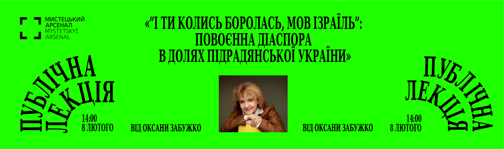 У неділю, 8 лютого о 14:00, запрошуємо до Старого арсеналу слухати Оксану Забужко. Письменниця, дослідниця та громадська діячка прочитає публічну лекцію «”І ти колись боролась, мов Ізраїль”: Повоєнна діаспора в долях підрадянської України». Подія відбудеться в межах освітньої програми виставки «Василь Стус. Поки ми тут, усе буде гаразд»