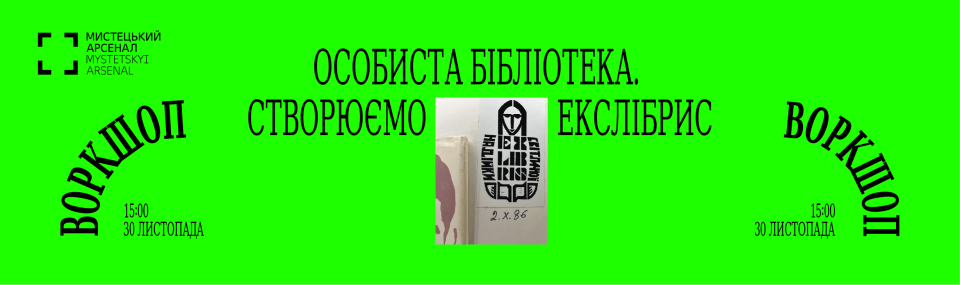У неділю, 30 листопада о 15:00, на виставці «Василь Стус. Поки ми тут, усе буде гаразд» проведемо воркшоп зі створення екслібриса (лат. ех libris — «із книжок») — власного книжкового знака, який закодовано розповідатиме про вас. Запрошуємо витворити екслібрис і вперше відбити його на сторінках збірки Василя Стуса, яку ви принесете з собою.