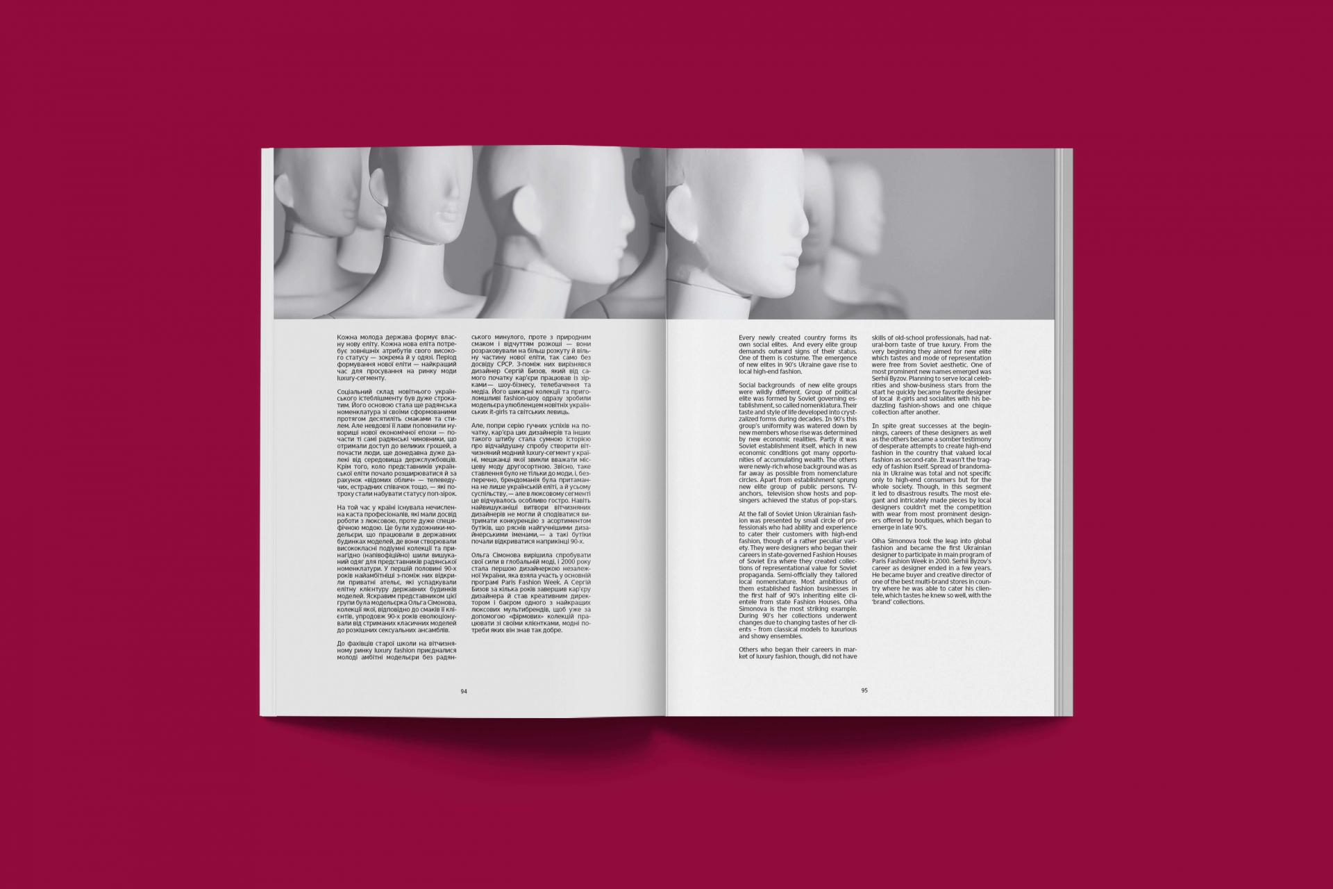 Влітку 2017 року в Мистецькому арсеналі в масштабному виставковому проєкті «In Progress. Дрес-код України доби Незалежності» було представлено усю новітню історію української моди: близько 200 витворів 40 українських дизайнерів. У книзі модні артефакти з виставки доповнено концептом історії української моди, розповідями про найкращі колекції та дизайнерів, а також унікальними архівними фотографіями з модних показів різних часів, що відображають не лише історію моди, а й історію суспільства.